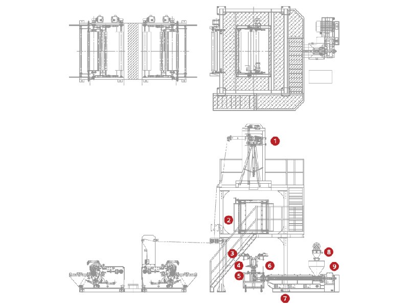 | Max Film Width(mm) | 最大吹膜寬度 | 800-1500 | 1000-2000 | 1500-2500 | 1800-3000 |